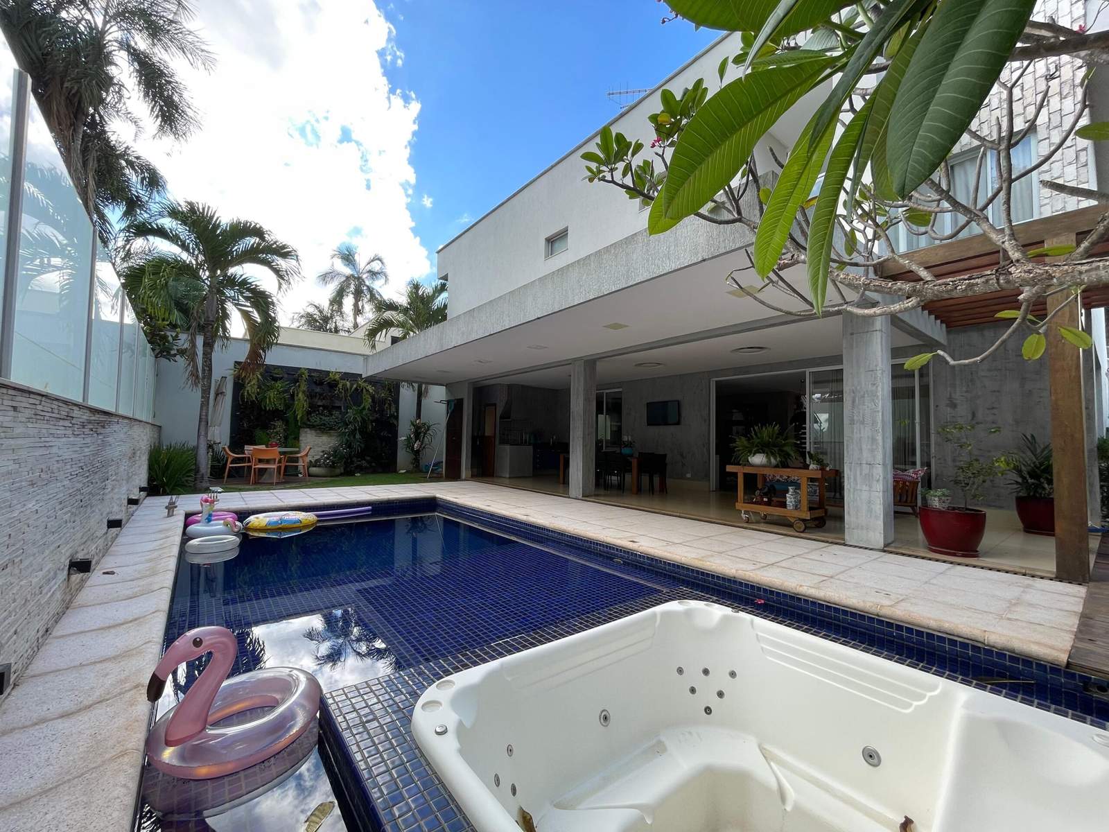 À venda residência de alto padrão no Portal do Sol I, com 430 m² de área construída em terreno de 540 m². Assinada pelas designers Maria Célia Moraes e Wanessa Clara, a casa alia sofisticação, conforto e funcionalidade em cada ambiente. O sobrado conta com 5 suítes, sendo 2 máster, uma delas com 75 m², banheira com vista para área verde, closet amplo e sacada privativa. A sala principal possui pé-direito de 6 metros, cortinas automatizadas e excelente iluminação natural. A cozinha planejada, com bancada em tecnostone, integra-se à área gourmet, criando um espaço harmonioso e acolhedor. O interior conta ainda com escritório reservado, lavabo decorado, ambientes climatizados, mobiliário sob medida Bentec e garagem para 4 veículos. Na área externa, piscina com jacuzzi para 8 pessoas, deck com espreguiçadeiras, pergolado, espaço gourmet completo e área verde permanente ao fundo, garantindo vista definitiva e total privacidade. Localização privilegiada, em frente a um parquinho infantil, ideal para famílias que buscam conforto, segurança e bem-estar. 💎 Valor atualizado: ➡️ R$ 2.900.000,00 – Porteira fechada (mobiliada e decorada) ➡️ R$ 2.660.000,00 – Sem os móveis Uma residência imponente e elegante, reconhecida pela Revista Vogue, que combina arquitetura autoral, design contemporâneo e exclusividade em um dos endereços mais valorizados de Goiânia.