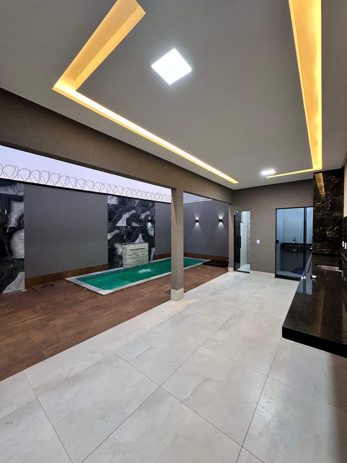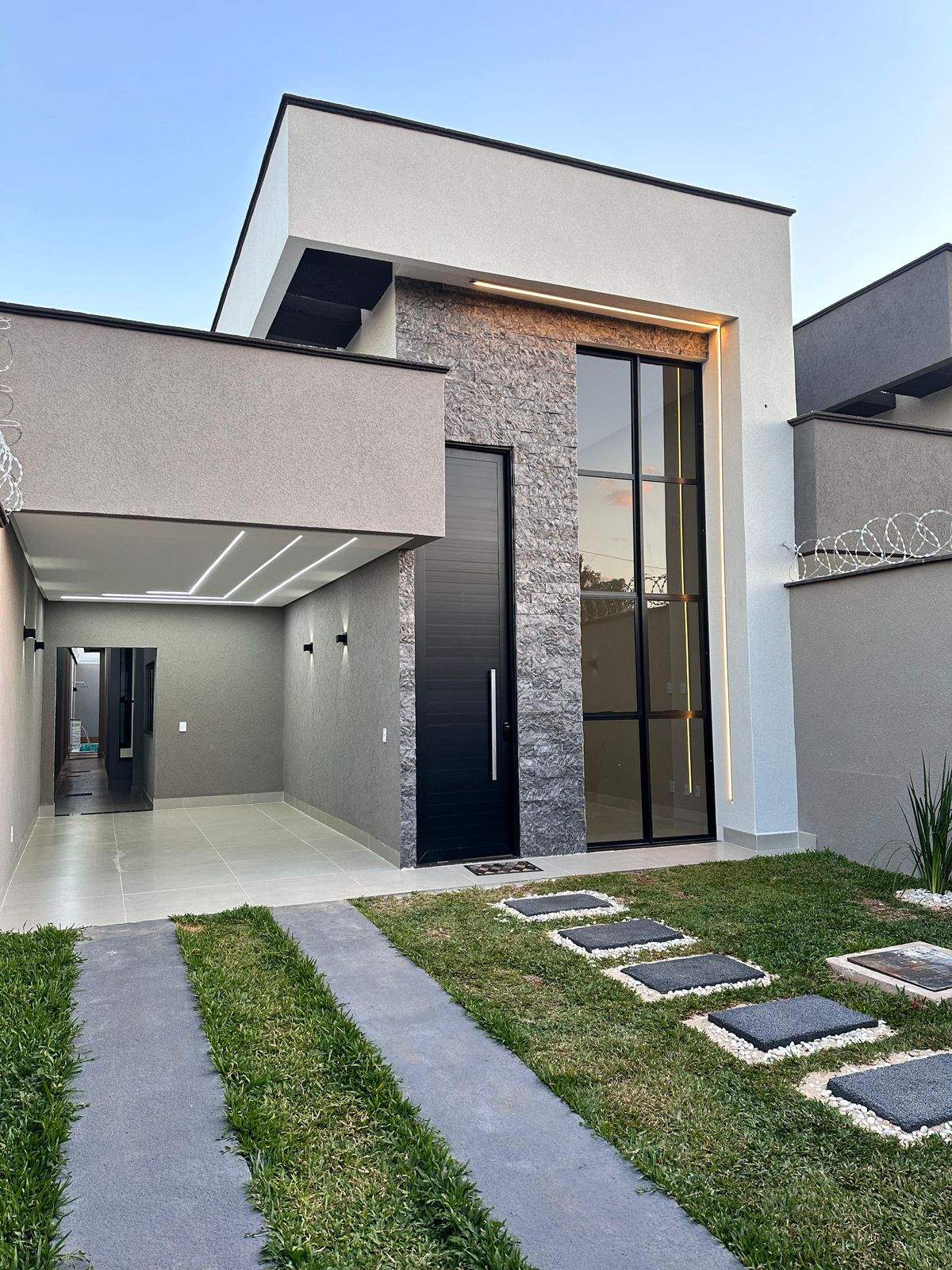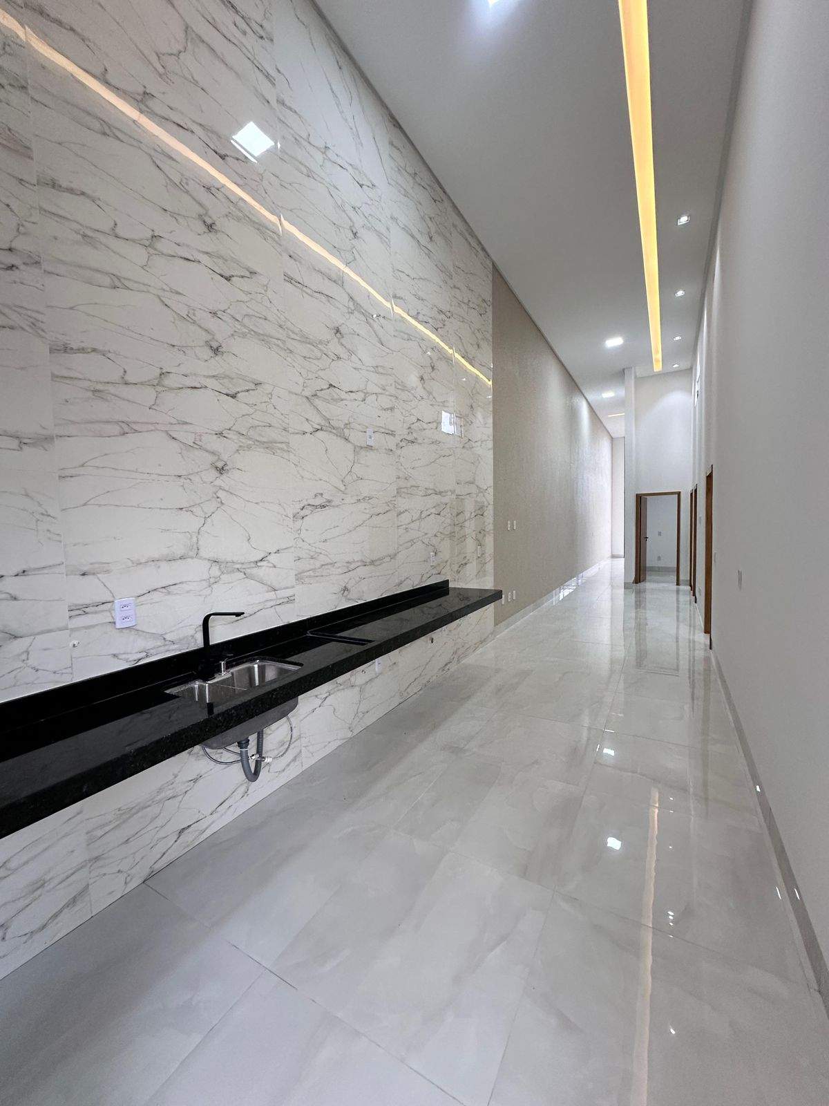 À venda, casa de altíssimo padrão no Bairro Cardoso, com acabamento premium e projeto exclusivo na região, ideal para cliente exigente. O imóvel conta com 3 quartos, sendo 1 suíte master com closet e 1 suíte americana, além de lavabo, lavanderia e garagem para 2 veículos. Possui pé-direito duplo de 5 metros na sala e cozinha, varanda gourmet com churrasqueira e vista para a piscina, cozinha com bancada e cuba gourmet integrada à sala de jantar, rodapé embutido, pontos para ar-condicionado nos quartos e acabamento impecável com porcelanato polido de alto padrão. Destaque para a fachada com pedra Matrix e cristal, esquadrias em vidro fumê, porta pivotante da sala de 3,70 m em alumínio preto com fechadura eletrônica e porta da cozinha em light wood com 4 folhas (2,80 m de largura). Área de lazer completa com piscina aquecida em alvenaria, com cascata, hidromassagem, prainha e iluminação em LED, medindo 5,50 m de comprimento e 1,40 m de profundidade, além de ducha. Banheiros com nichos amplos e cubas em Bege Bahia, iluminação em LED com sanca, gesso Quartz, pintura em cristal na sala e grafiado. Conta ainda com casa de gás oculta, encanação para pias da cozinha e área gourmet, concertina e área de serviço coberta. Localização privilegiada, a 5 minutos do Buriti Shopping, ao lado do Faicalville e do Parque Helvécia, com acesso rápido pela Avenida Rio Verde, próximo a supermercados e região comercial. Imóvel único, que une sofisticação, conforto e excelente localização.
