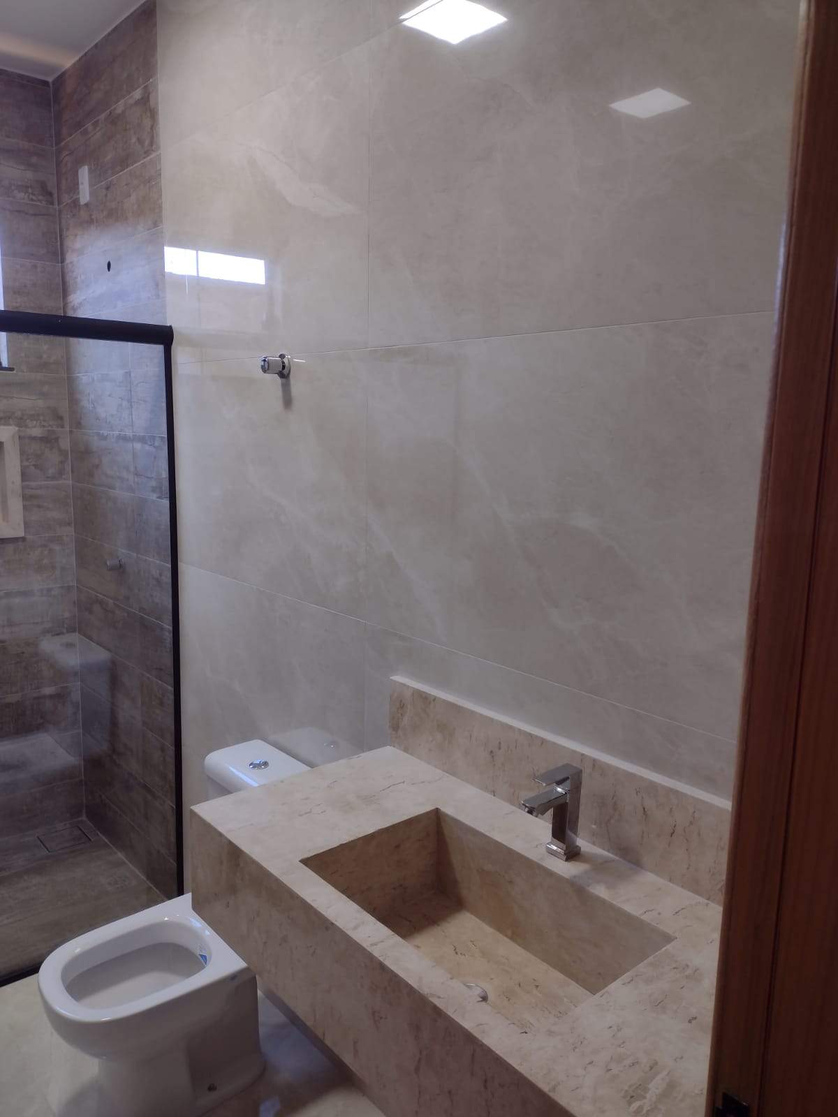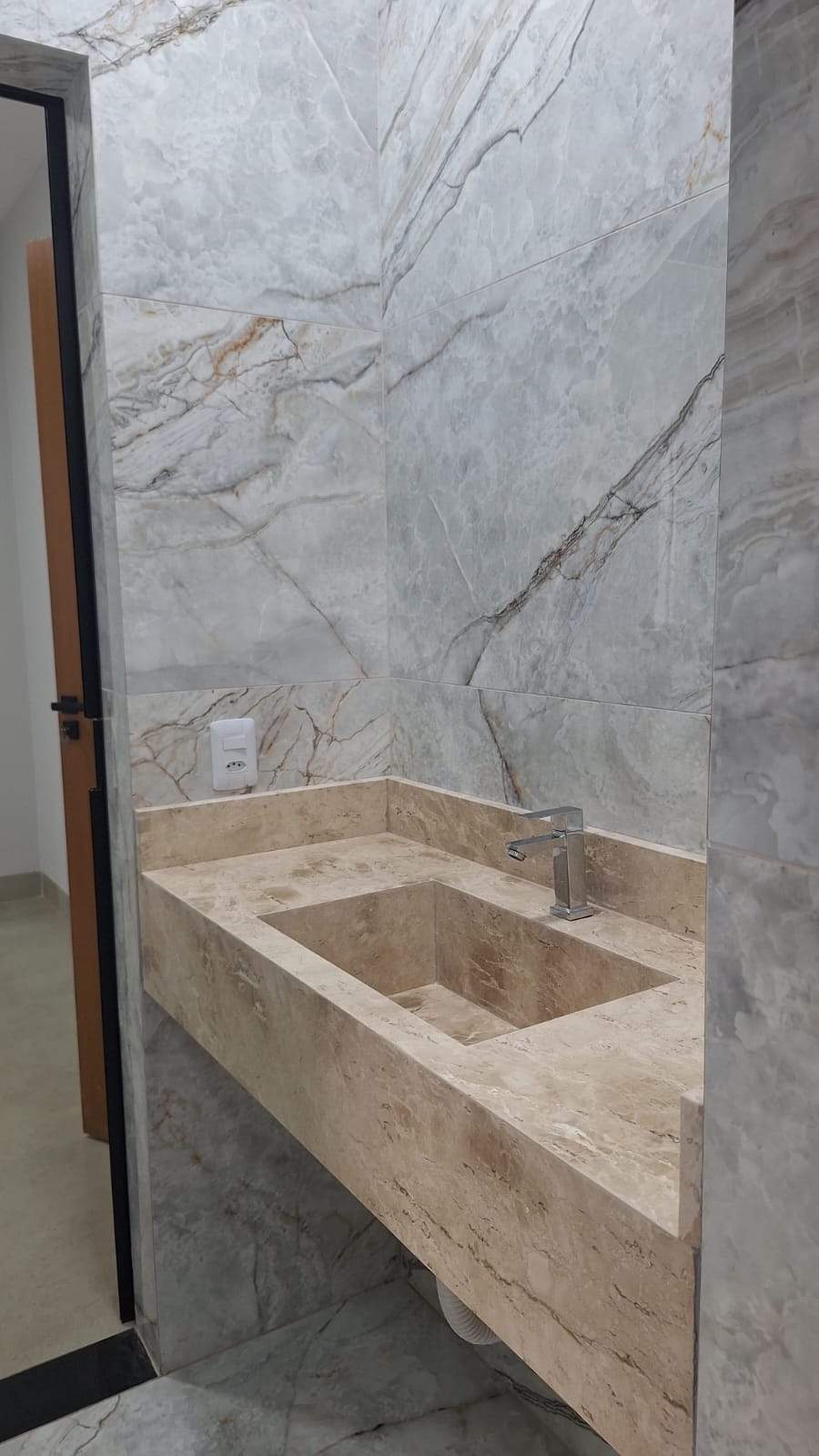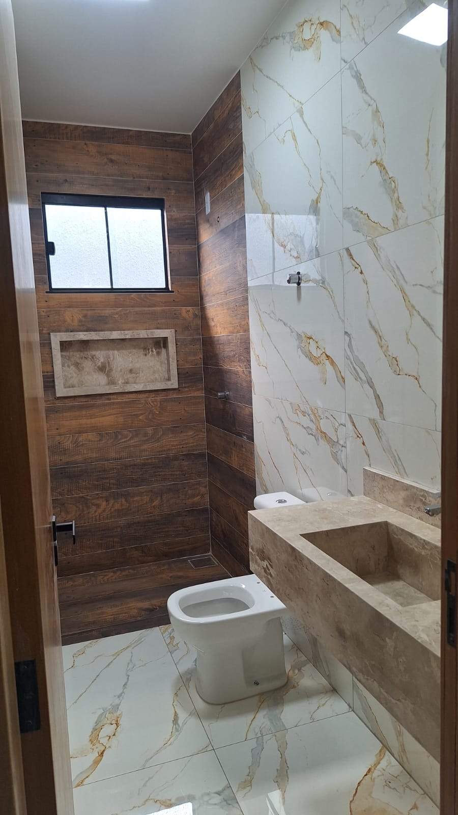 À venda, 3 quartos, sendo 3 suítes (1 principal e 2 americanas), 3 banheiros, 3 vagas de garagem, 114m² de área construída em lote de 180m². Casa com 1 suíte plena e 2 suítes americanas, cozinha integrada à área gourmet, lavabo, pé-direito duplo, sanca com LED e excelente padrão de acabamento. Imóvel com pisos e revestimentos em grande formato, rodapé embutido, pias da cozinha, área gourmet e soleiras no Preto São Gabriel, lavatórios em Bege Bahia, box na suíte plena, interfone e muro no cristal, oferecendo modernidade e sofisticação. Valor: R$ 450.000,00.