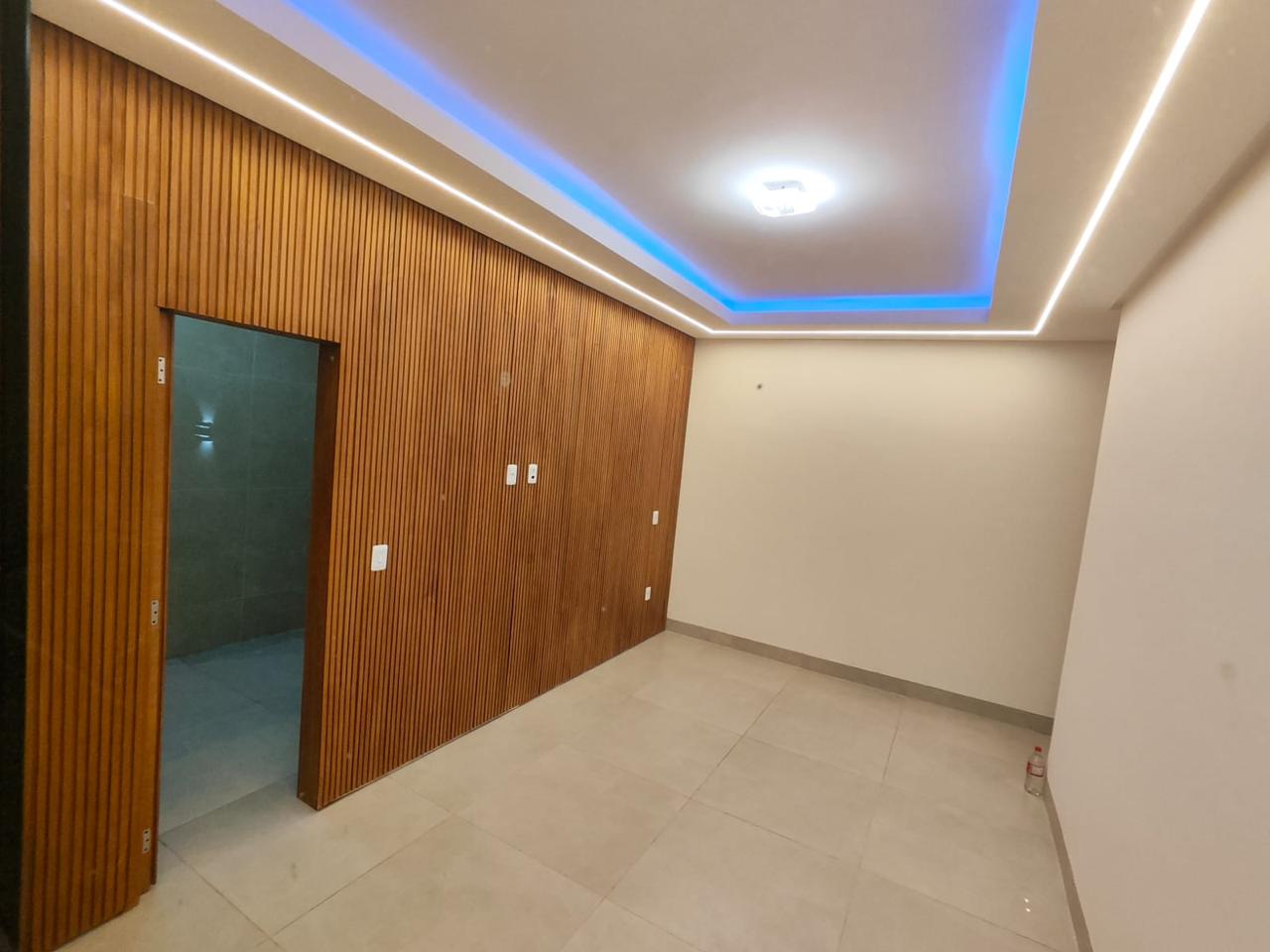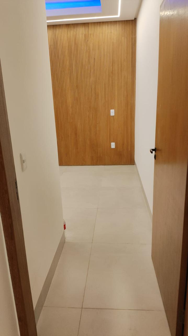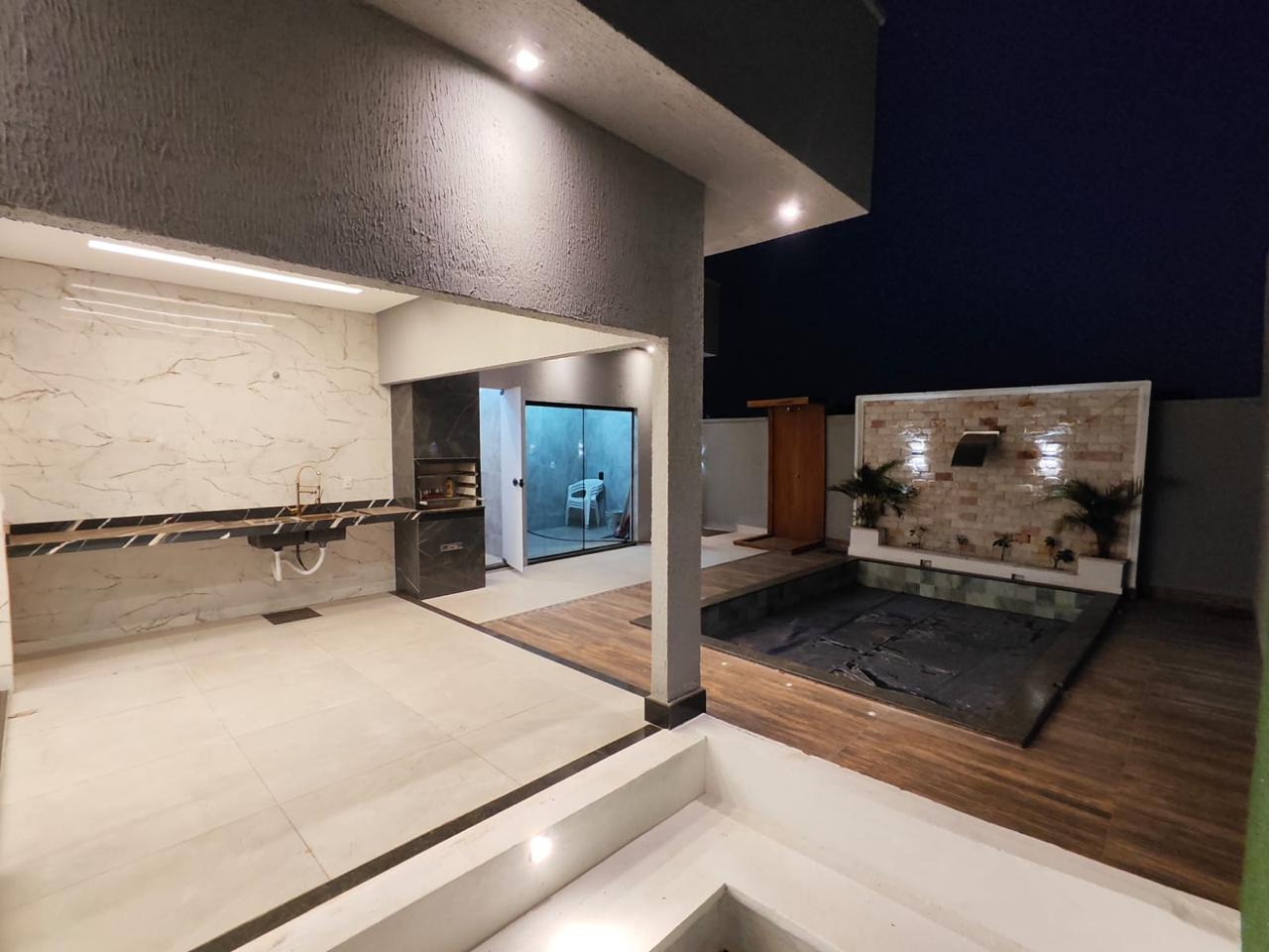 À venda casa térrea de alto padrão, 3 quartos, sendo 1 suíte master, com aprox. 210 m² de área construída, em lote de 360 m², no Buriti Sereno – Aparecida de Goiânia. Imóvel isolado no lote, com ambientes amplos, modernos e integrados, incluindo sala de TV, jantar, cozinha e área gourmet, além de escritório, lavabo e área de serviço. Suíte master com cuba dupla e dois chuveiros de teto com aquecimento solar, pé-direito duplo e iluminação em LED. Área de lazer completa com piscina com cascata, hidromassagem, aquecimento solar e iluminação em LED, lounge externo com lareira e paisagismo. Conta ainda com garagem para 4 veículos, sendo 2 cobertos, acabamento em porcelanato, rodapé embutido e fachada moderna com pedra ferro e porta pivotante em madeira. Imóvel que une design, conforto e exclusividade.