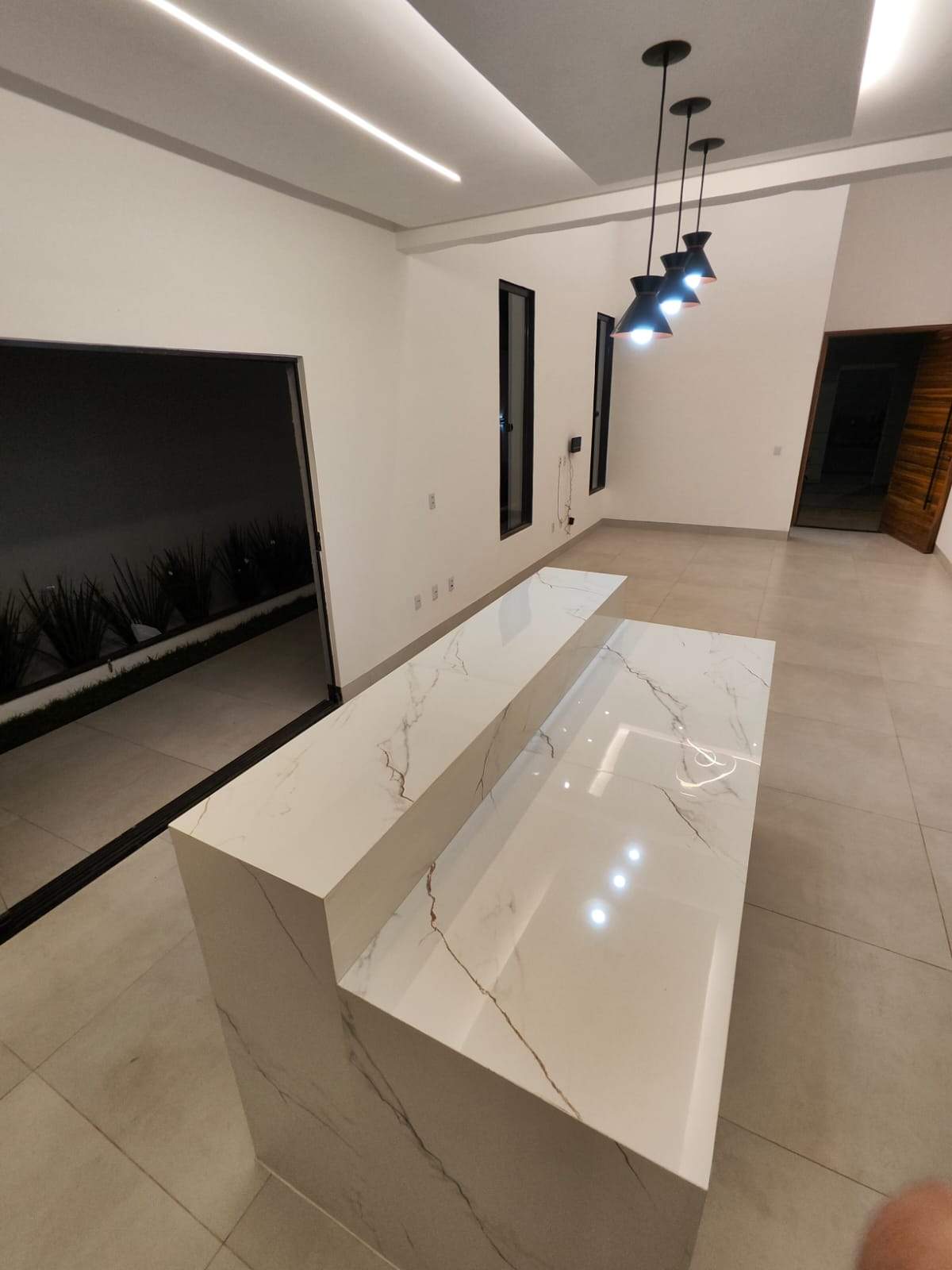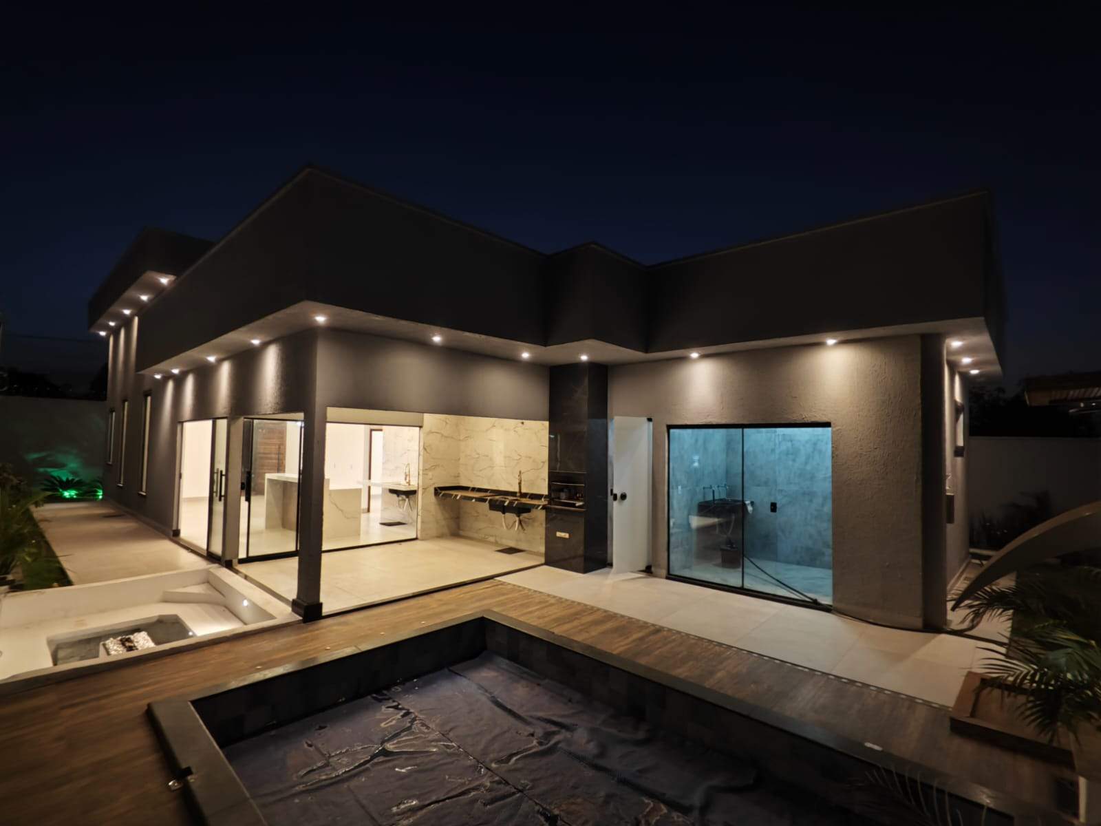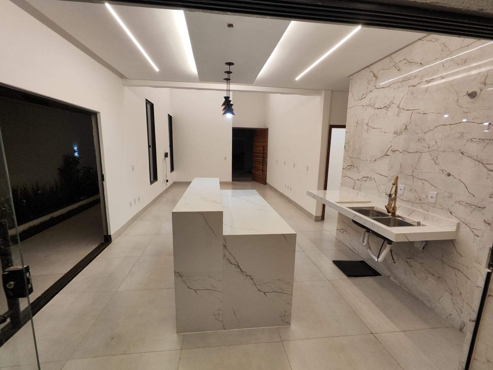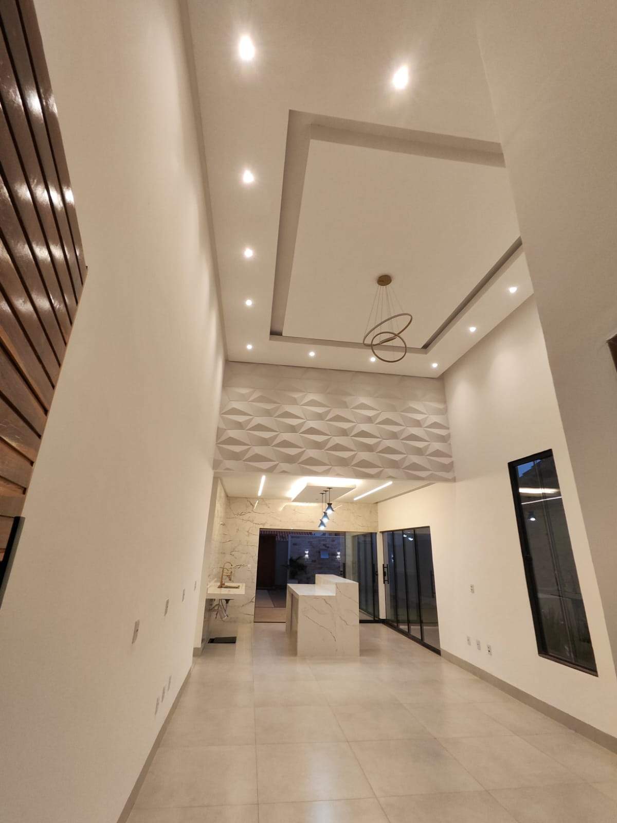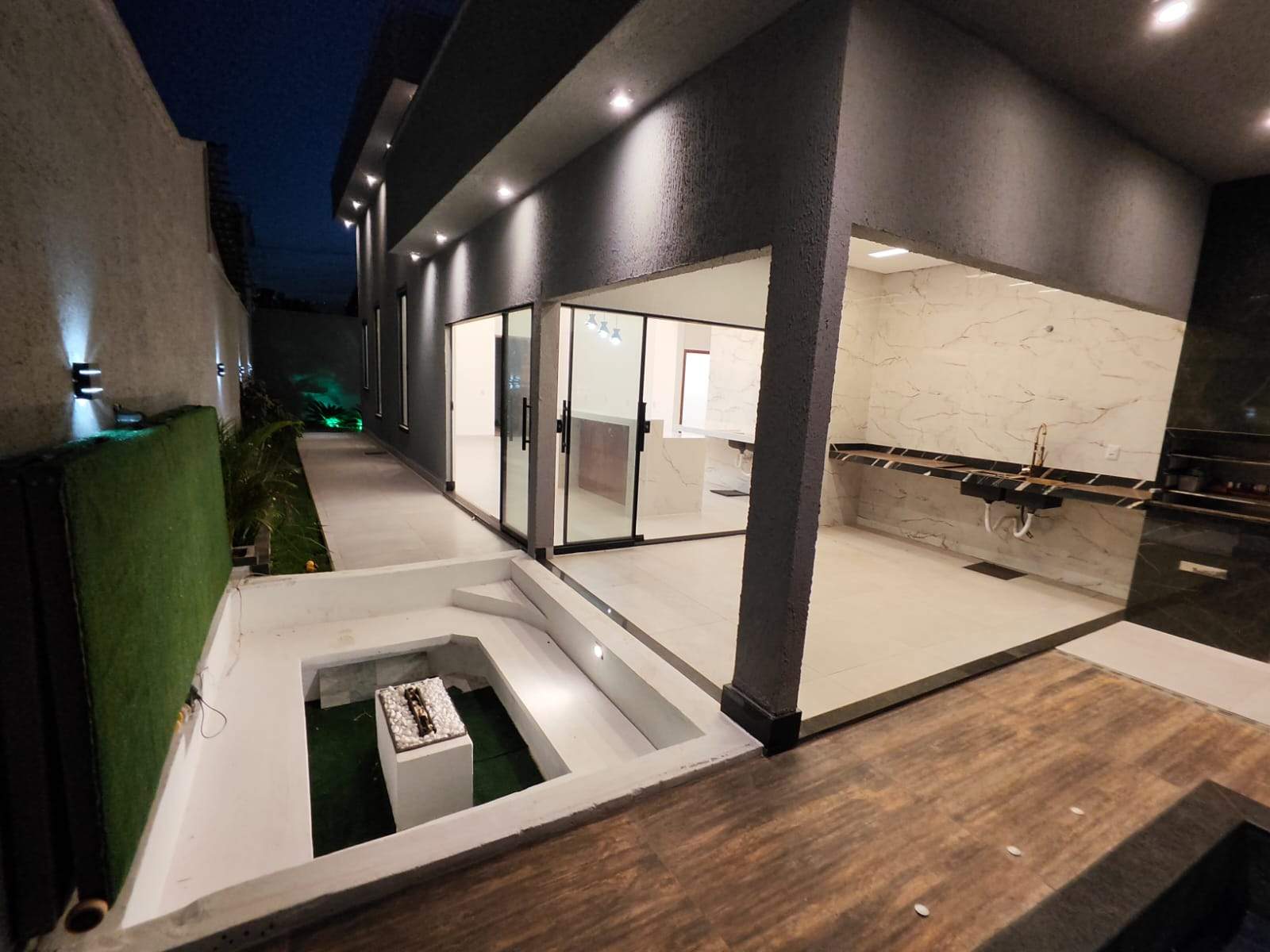 À venda casa térrea com 3 quartos (incluindo suíte master senhor e senhora), lavabo, escritório, 4 vagas (2 cobertas) e aprox. 210 m² de área construída em lote de 360 m², localizada no Buriti Sereno, Aparecida de Goiânia. Projeto moderno, ambientes integrados e excelente padrão de acabamento. A residência conta com suíte master ampla, equipada com duas cubas, dois chuveiros de teto e sistema de aquecimento solar. Sala de TV, jantar, cozinha e área de convivência integram-se com fluidez, criando um espaço ideal para receber. A área gourmet possui churrasqueira e conecta-se à cozinha moderna. O lazer é completo, com piscina com cascata, hidromassagem, aquecimento solar e iluminação em LED, além de lounge externo com lareira. O imóvel oferece ainda área de serviço, paisagismo planejado, pé-direito duplo, iluminação em LED em todo o projeto, porcelanato com rodapé embutido e fachada contemporânea com pedra ferro e porta pivotante em madeira. Uma opção sofisticada, funcional e pronta para proporcionar conforto, convivência e qualidade de vida.