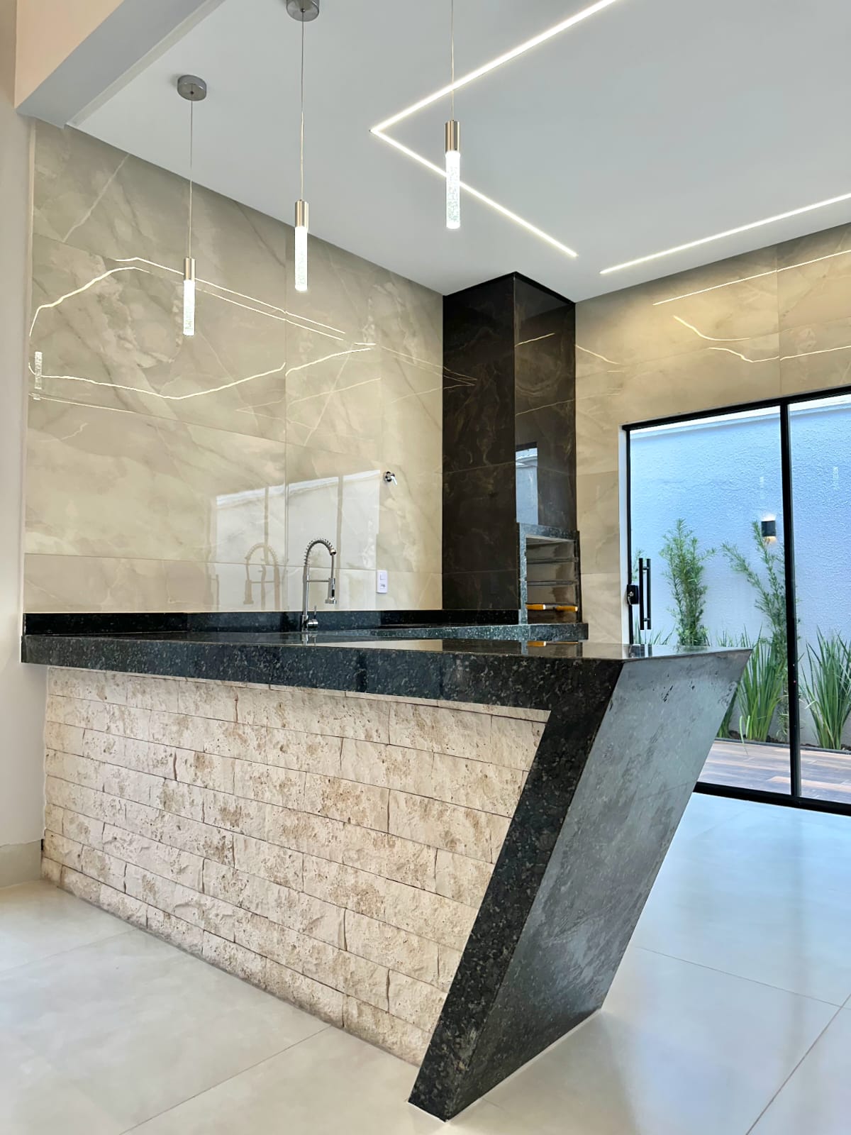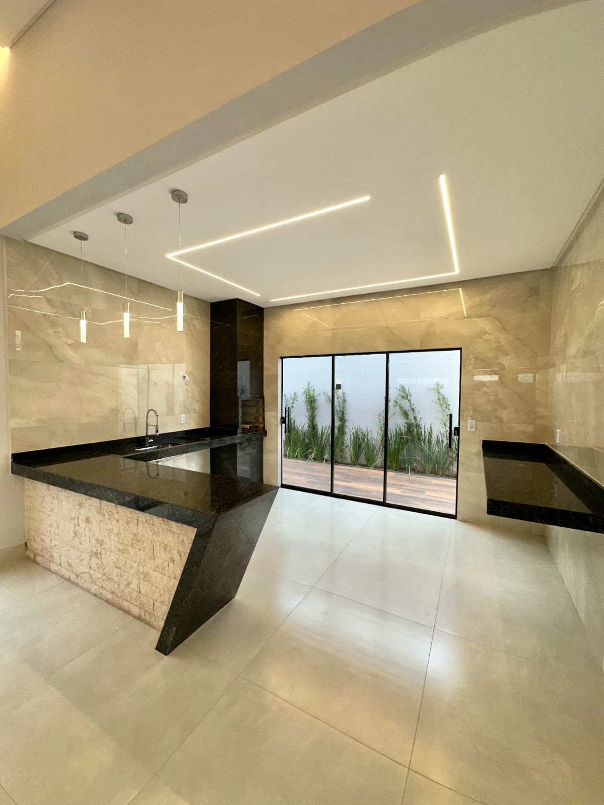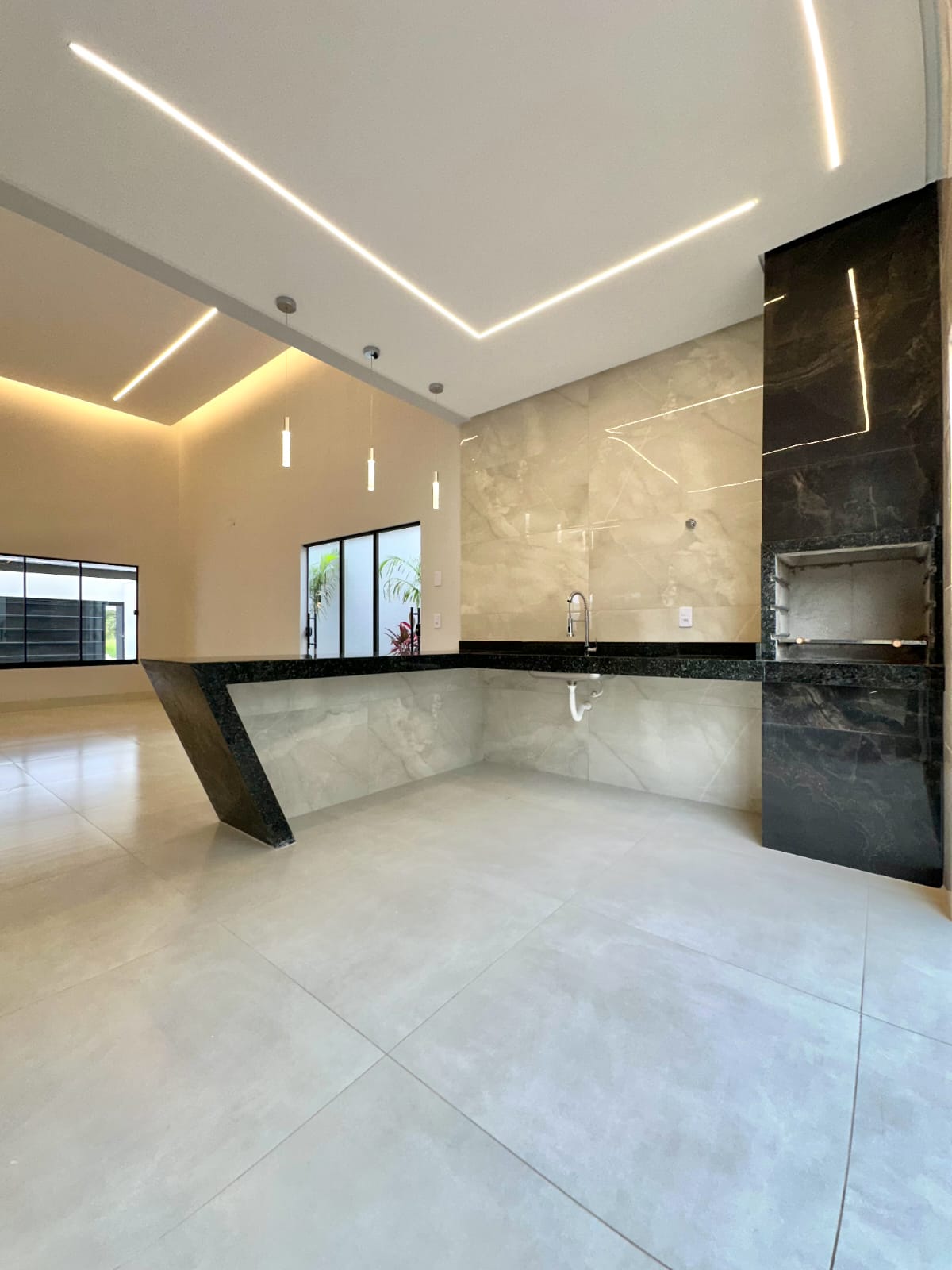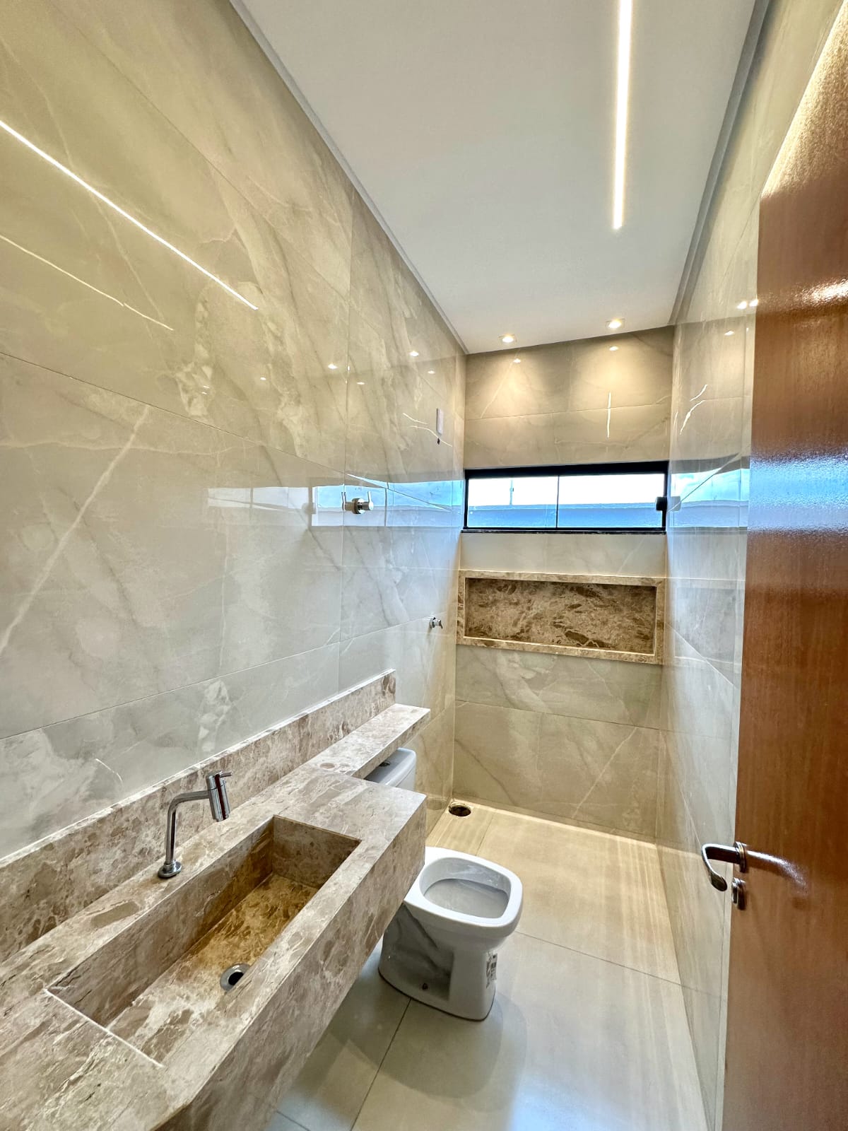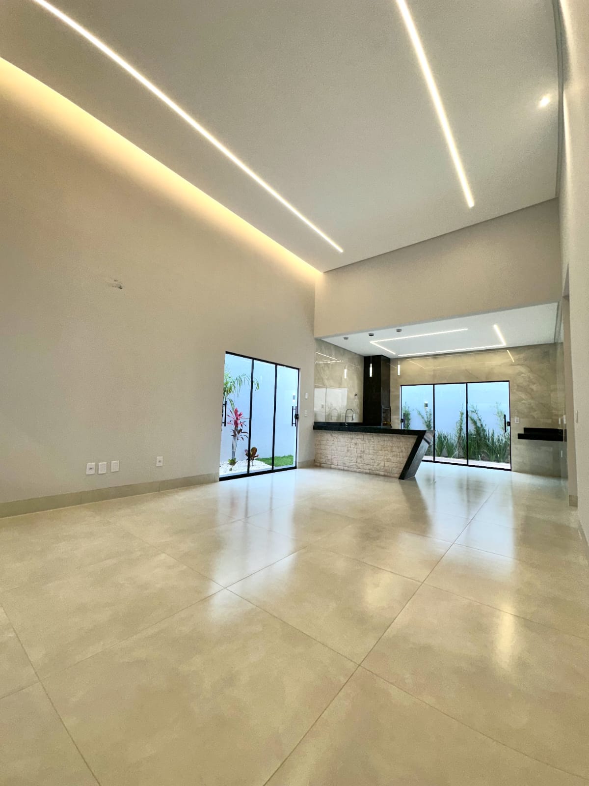 Casa térrea com 3 quartos, sendo 1 suíte, banheiro social e garagem coberta para dois carros, posicionada sozinha no lote, garantindo privacidade e ótimo aproveitamento do espaço. A fachada apresenta design moderno, com pintura em cristais e acabamentos de extremo bom gosto, valorizando a estética e a durabilidade. O projeto luminotécnico completo inclui perfis de LED, cortineiros iluminados, pendentes e arandelas, realçando os ambientes com elegância e conforto visual. Os lavatórios e nichos em mármore esculpido trazem sofisticação aos banheiros, enquanto o muro frontal em cristais com ripado em cedrinho complementa a harmonia do conjunto arquitetônico. O quintal amplo oferece espaço para piscina e paisagismo completo, além de infraestrutura para ar-condicionado nos quartos e na sala. Um imóvel que une funcionalidade, estilo e atenção aos detalhes, ideal para quem busca conforto e modernidade em cada ambiente.