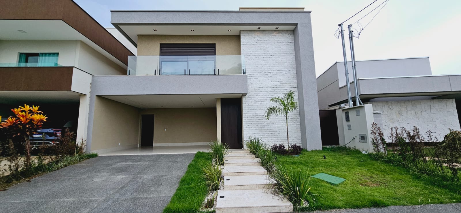 À venda, sobrado de alto padrão no Condomínio Jardins Bolonha, com 3 suítes, piscina, área gourmet, 253 m² de área construída, lote de 300 m², Senador Canedo. Sobrado recém-construído, com fachada imponente e arquitetura contemporânea. Possui 3 suítes plenas, sendo a suíte master com closet, ampla sala integrada de estar, TV e jantar, com excelente iluminação natural. Conta com projeto luminotécnico em LED, rodapés embutidos, escada em mármore, venezianas automatizadas e acabamento de alto padrão em todos os ambientes. Área gourmet completa com churrasqueira a carvão, integrada à piscina aquecida com iluminação em LED e cascata, ideal para lazer e convivência. O Condomínio Jardins Bolonha oferece lazer completo, com quadras de tênis, campos de futebol, quadra poliesportiva, quiosques com churrasqueira, salão de festas, playground, além de portaria e segurança 24 horas, em um ambiente planejado, seguro e cercado de natureza.