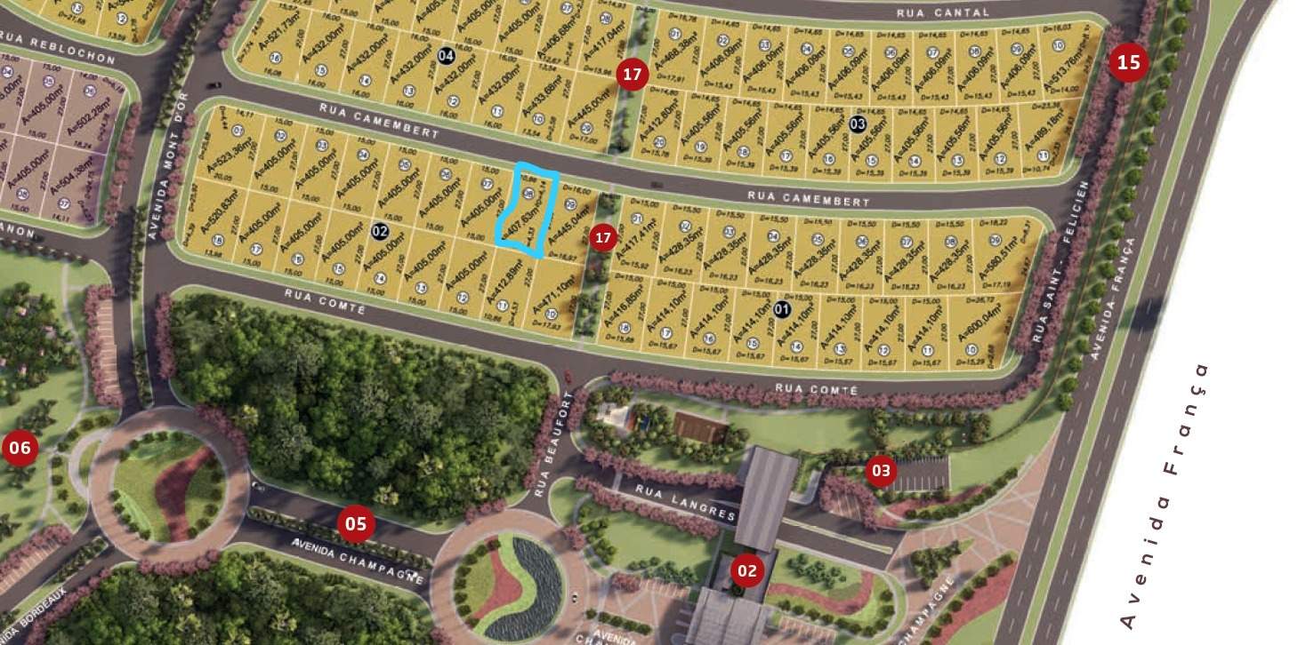 À venda lote no Jardins França, com 407,63 m², excelente oportunidade em condomínio de alto padrão, ideal para construção de residência personalizada, com infraestrutura completa, segurança e localização privilegiada.