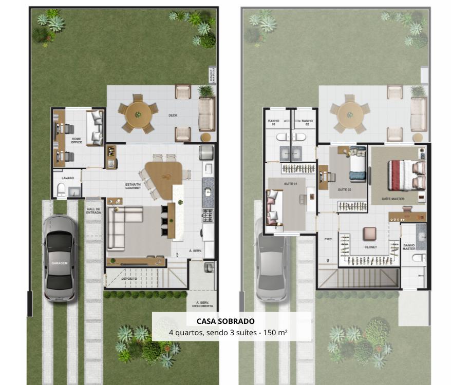 À venda sobrado com 150 m², 4 quartos, sendo 3 suítes, com Kit Gourmet 2 (mais completo) e Fachada Salgueiro 4. Localizado na Quadra 23, Lote 11, em frente à mata, sem vizinhos de frente, uma das melhores localizações do condomínio, garantindo mais privacidade e valorização. Projeto moderno e funcional, com excelente aproveitamento dos espaços e padrão construtivo elevado, ideal para quem busca conforto, sofisticação e qualidade de vida em condomínio fechado. Condição facilitada: Parcelas de R$ 1.900,00 até a entrega das chaves. Excelente oportunidade para morar ou investir em um imóvel bem posicionado, com alto potencial de valorização.