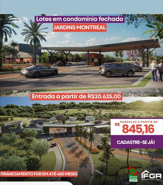 À venda lote no Jardins Montreal, 278,5 m², Quadra 1, Lote 19, próximo à portaria, com menor valor de parcela do mercado. Excelente localização interna, ideal para moradia ou investimento, com alto potencial de valorização. Condições: Entrada: R$ 108.000,00 Parcelas mensais: R$ 833,31 (477x) Parcelas anuais: R$ 22.000,00 (40x) Consultar valores atualizados.