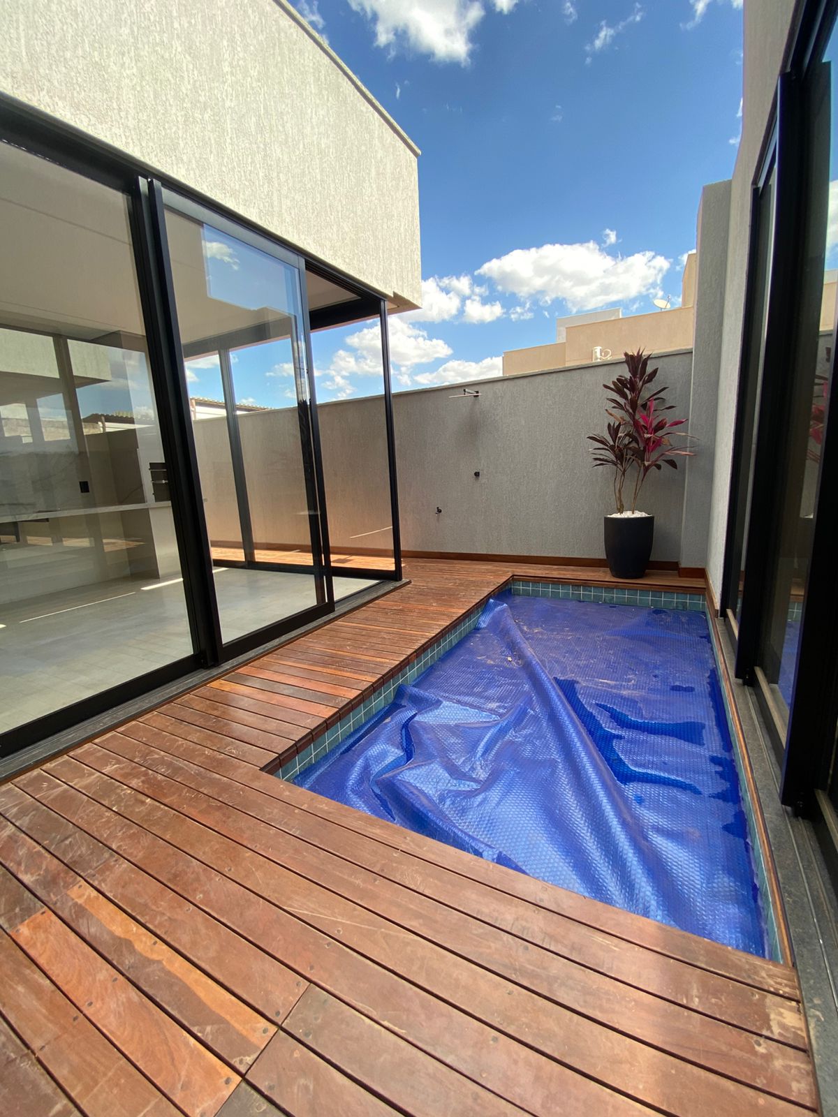 À venda, casa no Jardins Porto em Senador Canedo, com 309,46 m² de terreno e 163,28 m² de área construída, acabamento de alto padrão. Conta com sala de pé direito duplo, cozinha integrada ao gourmet com conexão à garagem, 3 suítes com persianas automáticas e varandas, sendo a master com amplo closet. Possui piscina aquecida com hidromassagem e deck em madeira, aquecimento solar com boiler de 400L, poço artesiano e garagem para quatro veículos (2 cobertos e 2 descobertos) já preparada para carregador de carro elétrico. Acabamentos em pedras nobres como Crema Marfil, Ônix e Quartzito Meridian, além de lavabo com revestimento Travertino Cairo. Condomínio com portaria e segurança 24h, academia equipada e climatizada, quadras de areia, tênis e poliesportiva, campo de futebol, quiosques gourmet, salão de festas, mini mercado, brinquedoteca, playground e lago para pesca esportiva. Localização em área de constante desenvolvimento, com fácil acesso.