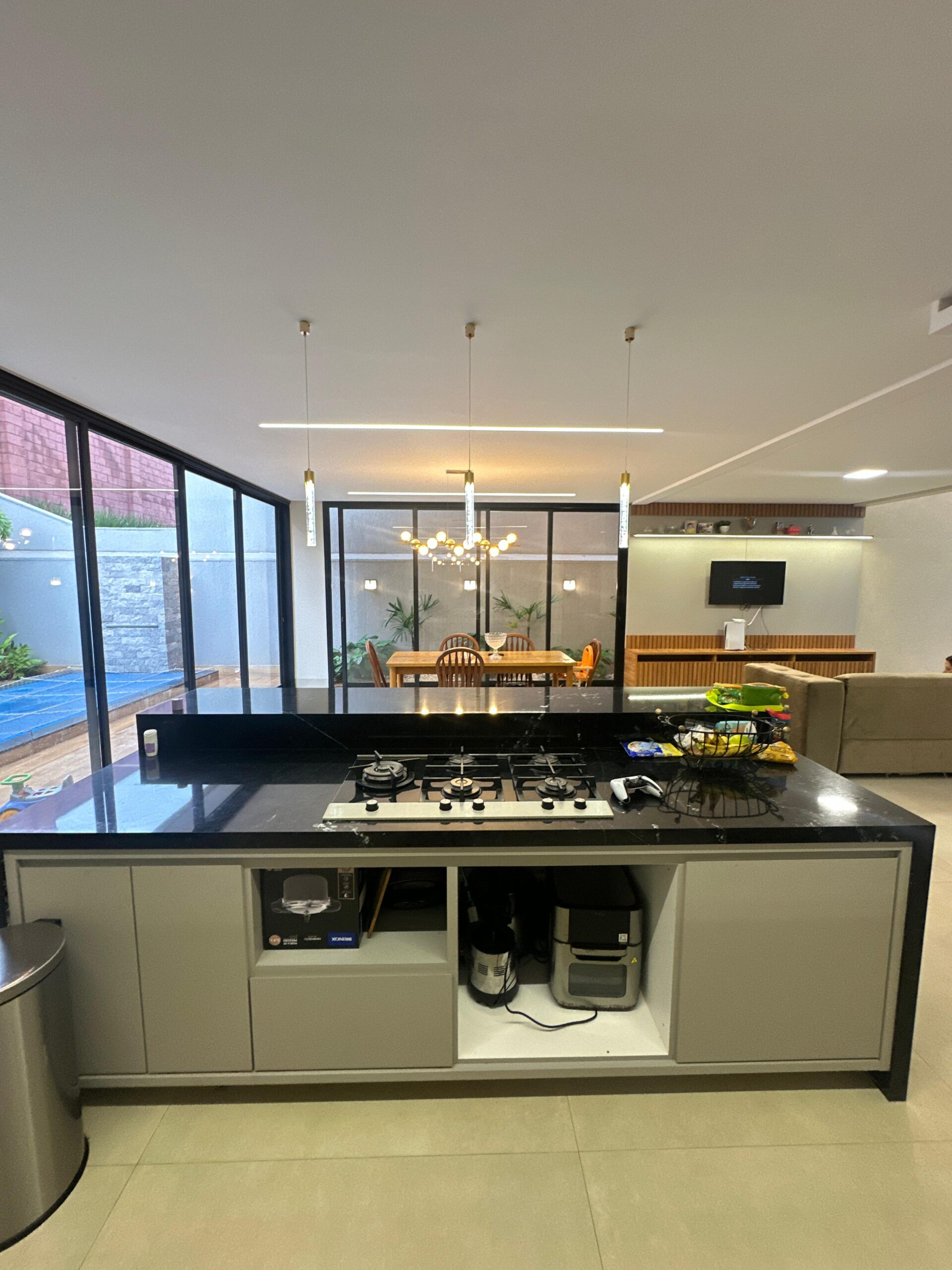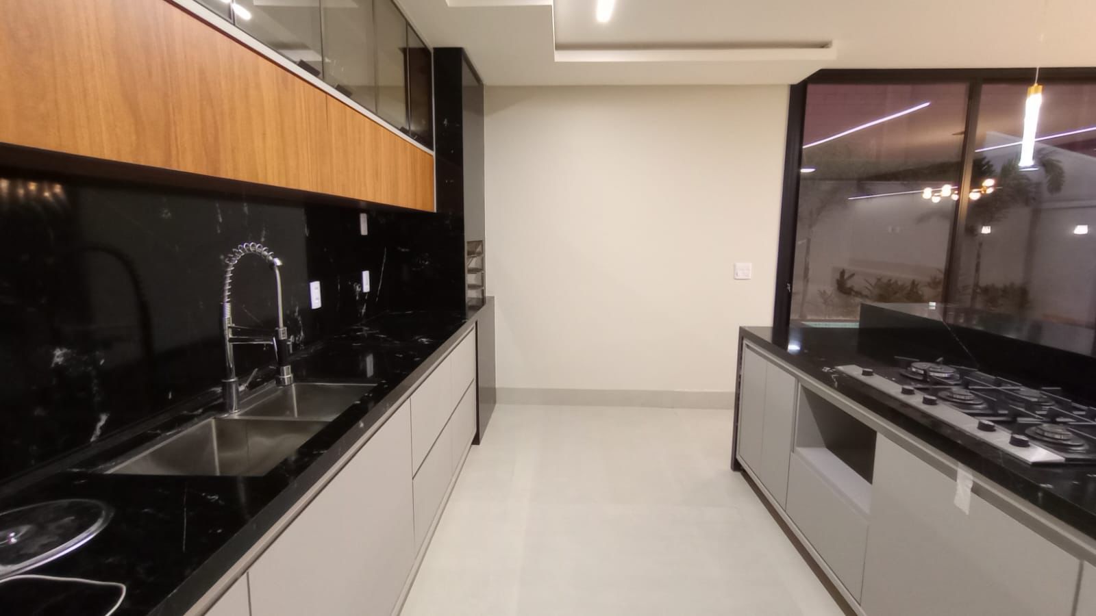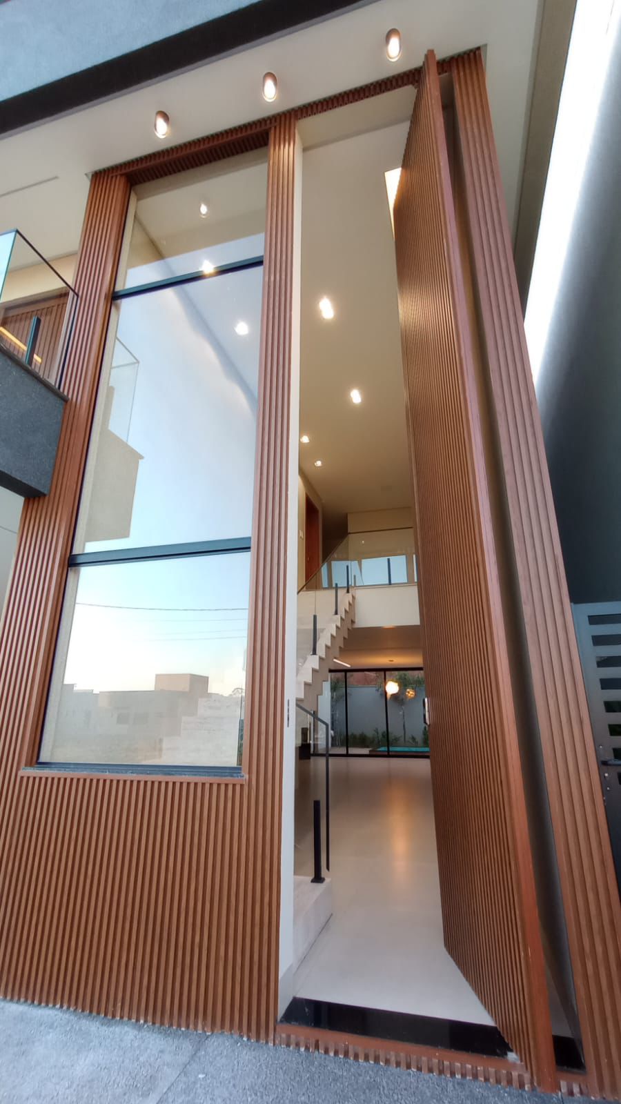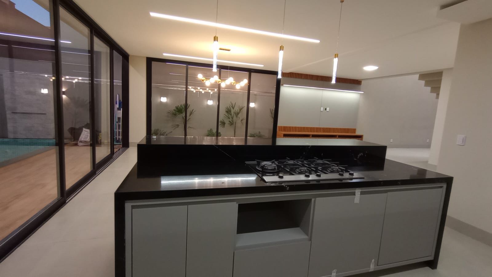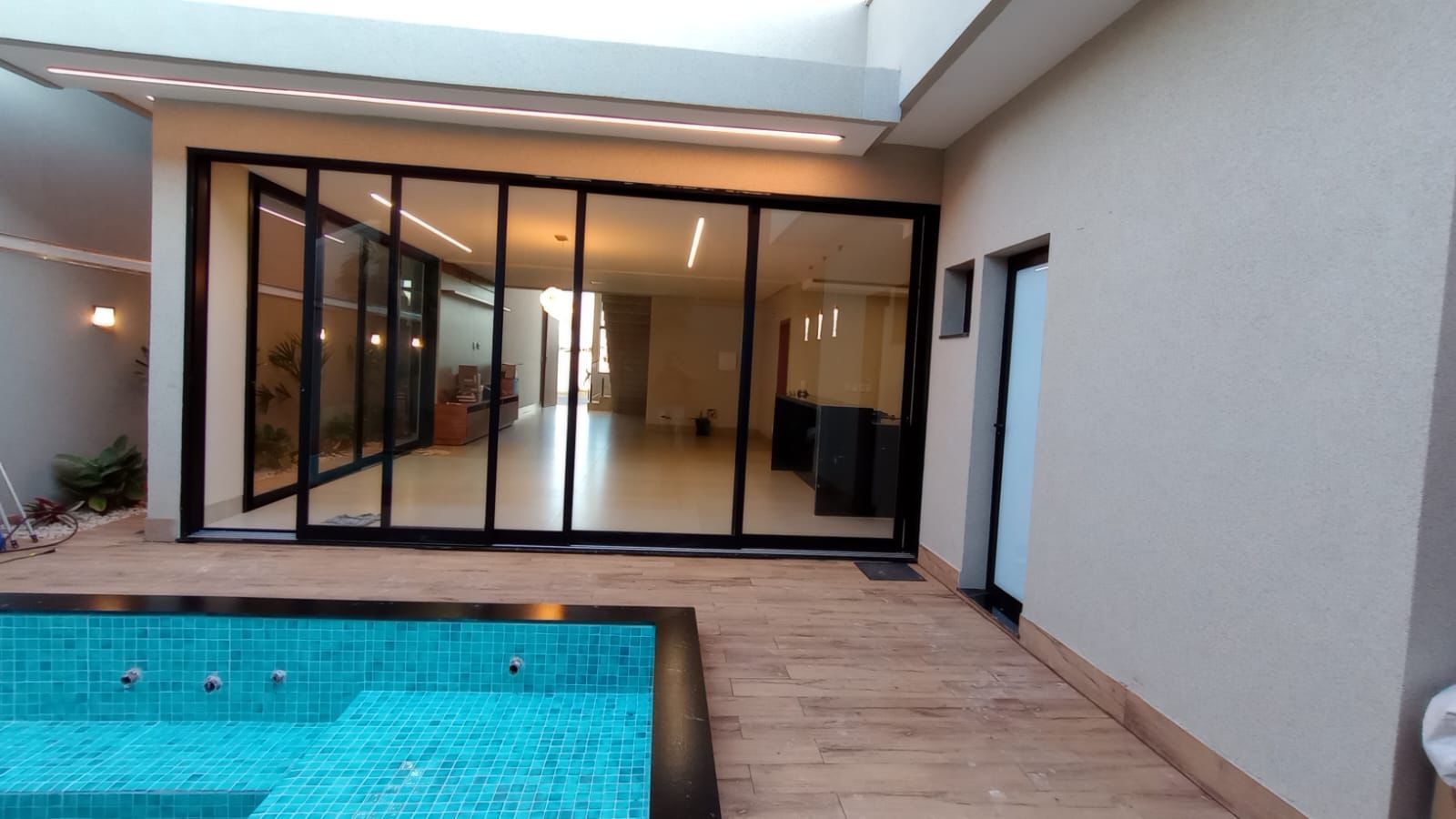 À venda sobrado com 3 suítes, 5 banheiros, 2 vagas de garagem e 228 m² de área construída em lote de 275 m². No pavimento superior, dispõe de 3 suítes plenas, sendo a master com banheira, closet e varanda, além de duas suítes de solteiro, ambas com varanda. No pavimento inferior, conta com escritório (ou 4º quarto), sala ampla para 2 ambientes com pé-direito duplo integrada à cozinha, espaço gourmet com churrasqueira, despensa, área de serviço privativa e lavabo. O acabamento é de alto padrão, com porcelanato 83×83, iluminação completa em LED, banheiros montados com nichos em granito e esquadrias em alumínio. Possui paisagismo completo e preparação para aquecimento solar em chuveiros, pias e cozinha. A área de lazer é privativa, com piscina preparada para aquecimento, hidromassagem, cascata, iluminação em LED, ducha fria e banheiro externo com chuveiro.