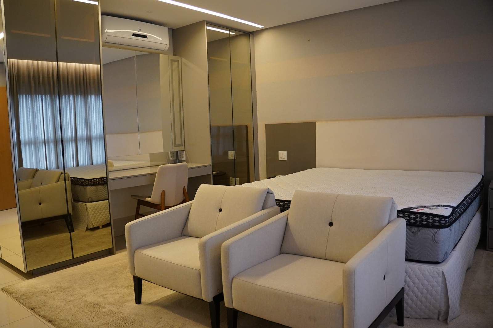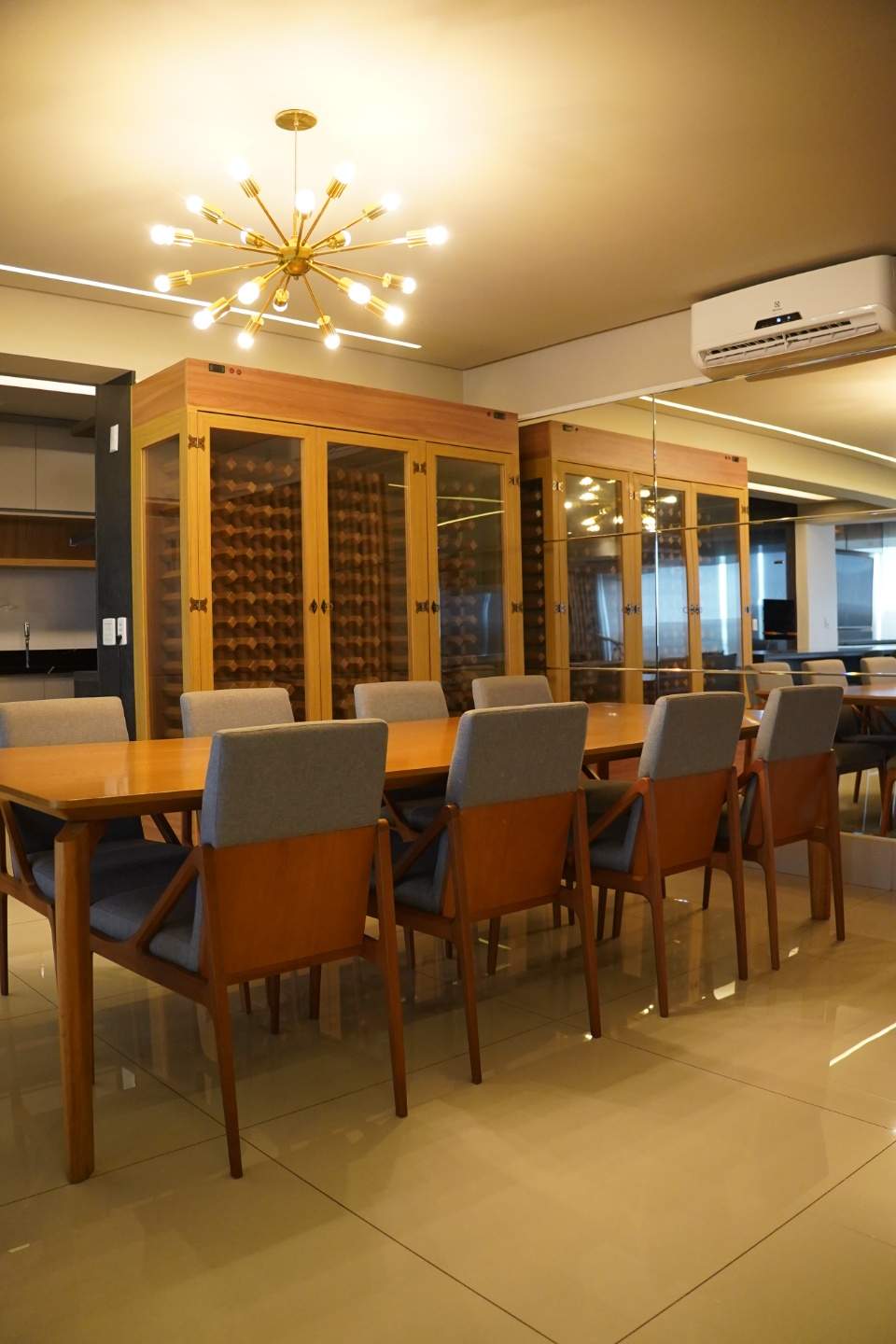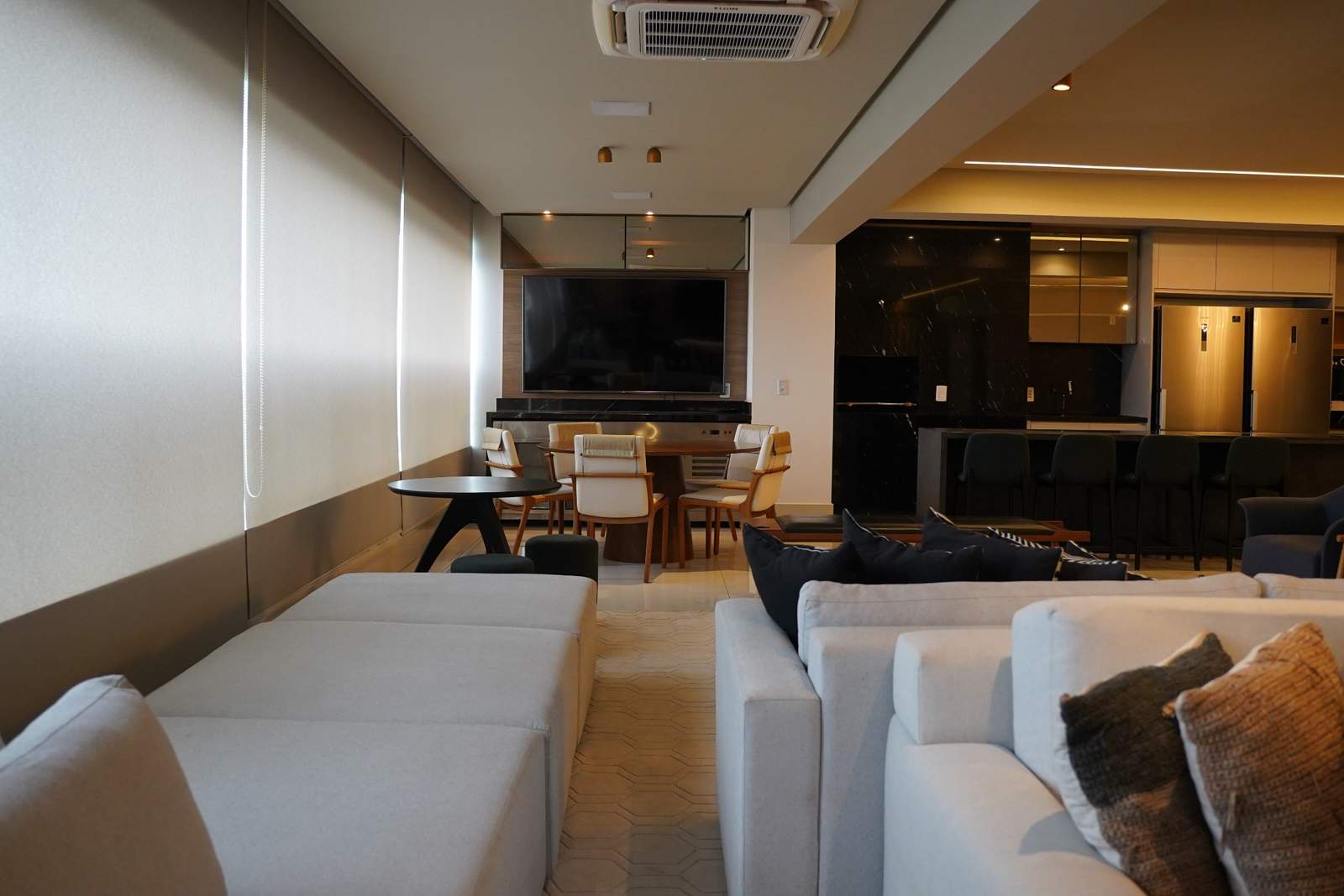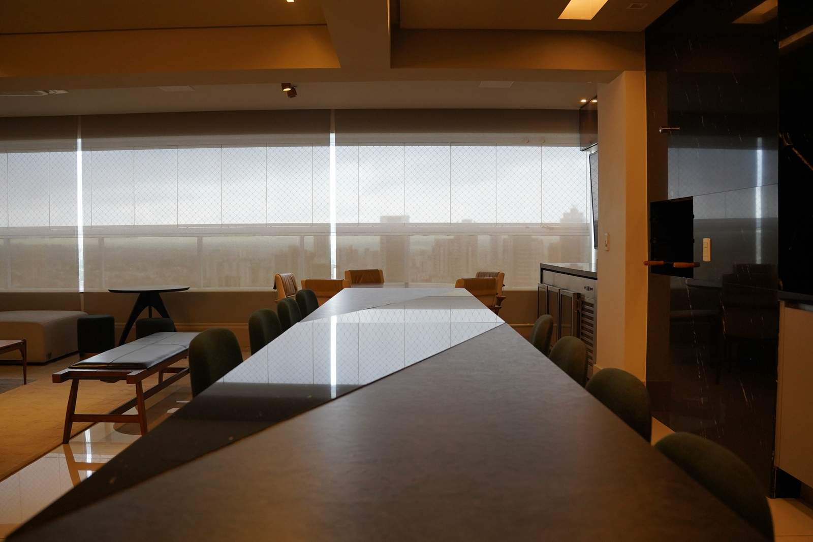 À venda, 4 suítes, 4 vagas de garagem, 264m², apartamento mobiliado, com vista definitiva para o Lago das Rosas. Apartamento mobiliado e decorado, pronto para morar, com 264m² muito bem distribuídos, 4 suítes (incluindo suíte master com banheira) e escritório. Imóvel rico em armários, com acabamentos de alto padrão e ambientes amplos e integrados. A sala é um dos grandes destaques, totalmente integrada, com adega para 190 rótulos, cervejeira profissional, dois televisores, duas mesas de jantar e bancada para 8 lugares, além de churrasqueira a carvão e uma vista permanente deslumbrante. Prédio moderno, com menos de 10 anos, oferece lazer completo com piscina aquecida, salão de jogos, espaço mulher, salão de festas, espaço gourmet, churrasqueira, brinquedoteca, forno de pizza, quadra poliesportiva, playground, sauna, academia e espaço para lutas. Conta ainda com portaria 24 horas e hall privativo, garantindo segurança e exclusividade.