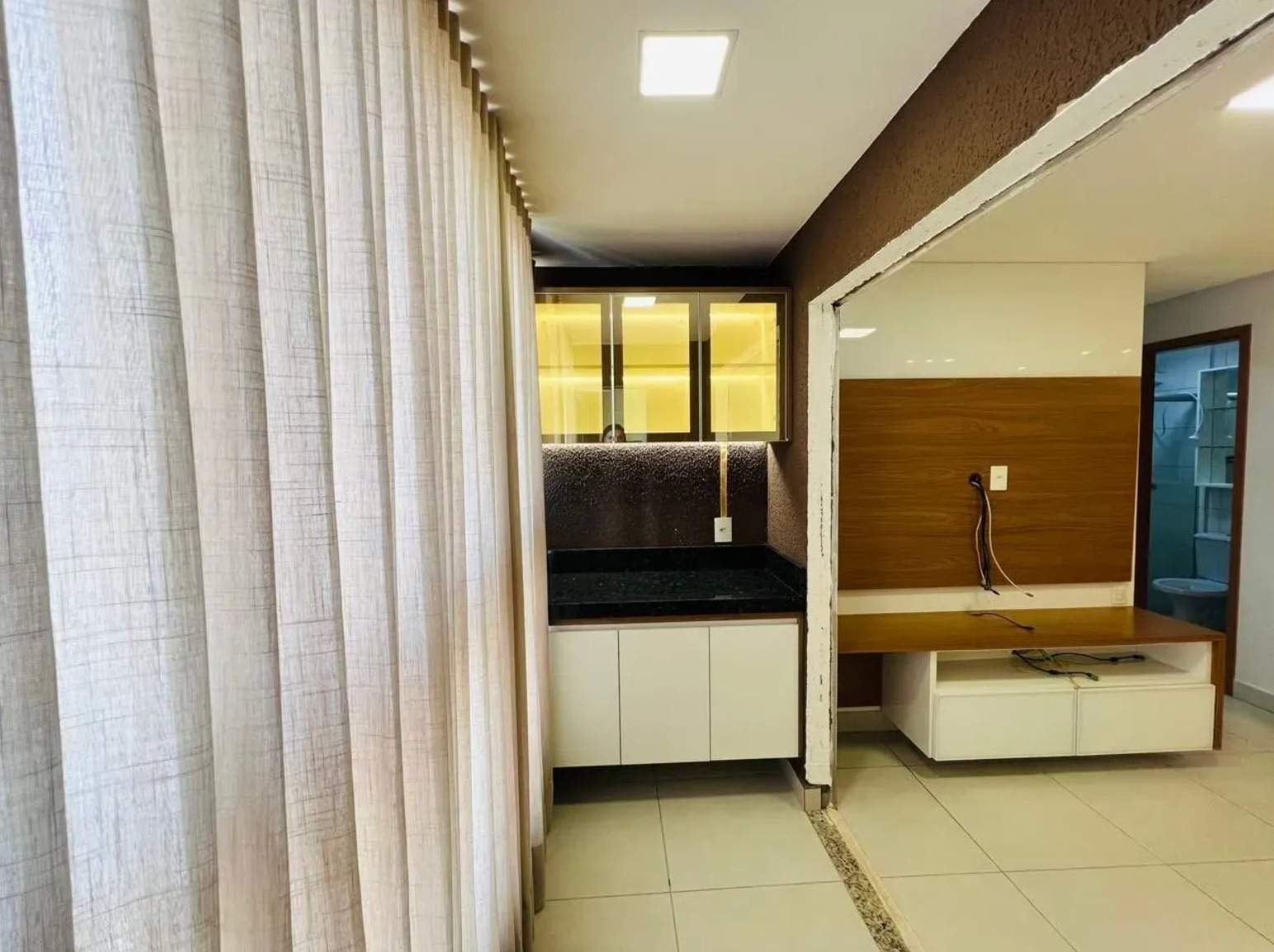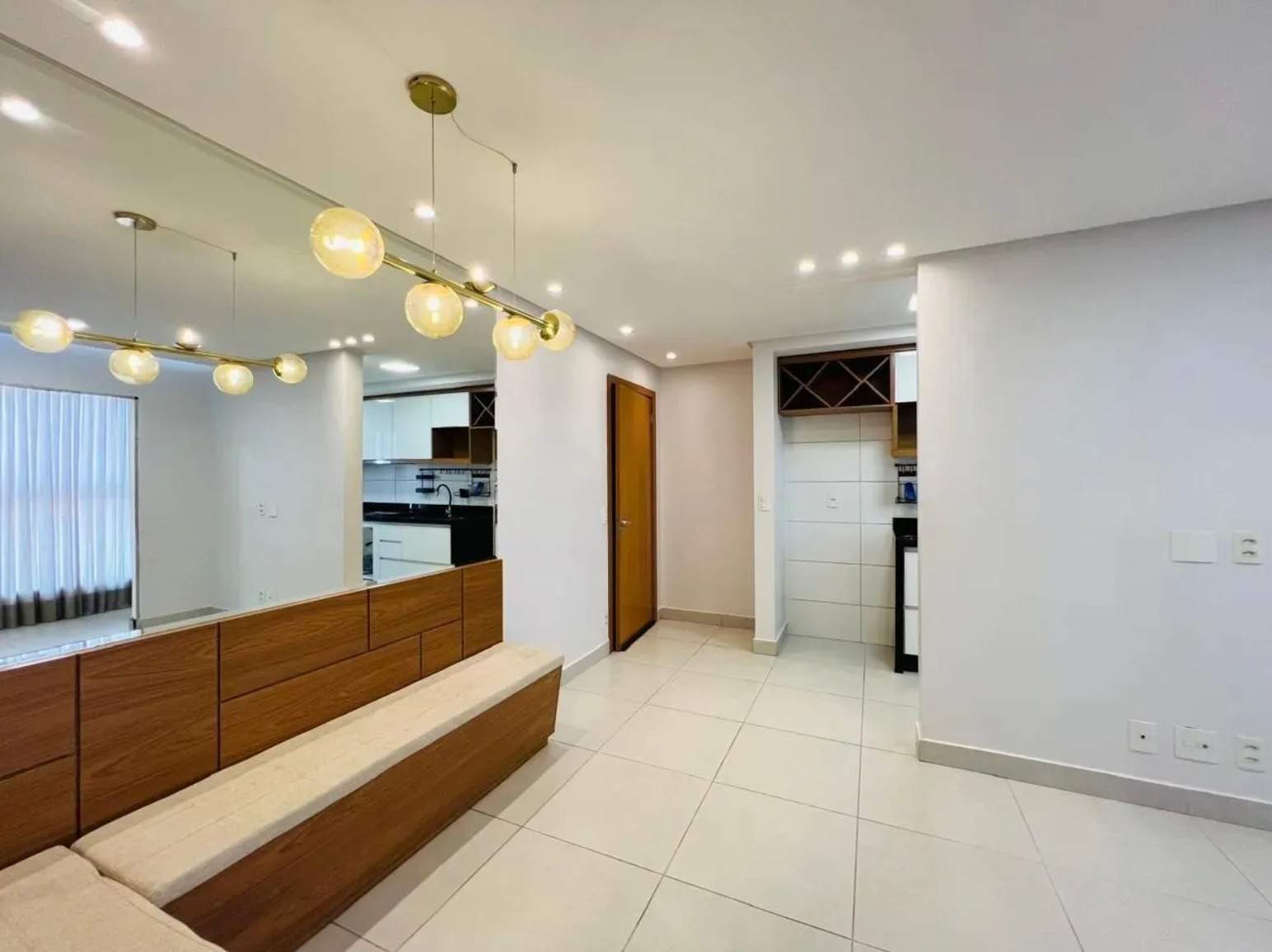 À venda, 2 quartos sendo 1 suíte, 2 banheiros, 1 vaga de garagem, 58m², 9º andar. Apartamento com sala para dois ambientes, cozinha repleta de armários, 1 quarto com armários e sacada com cortina de vidro. Condomínio com lazer completo, incluindo piscina com aquecimento solar, quadra poliesportiva, academia, espaço gourmet, churrasqueira, jardim, playground e salão de festas.