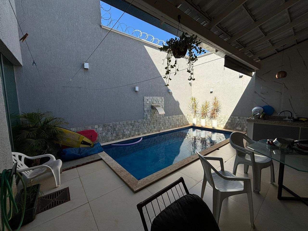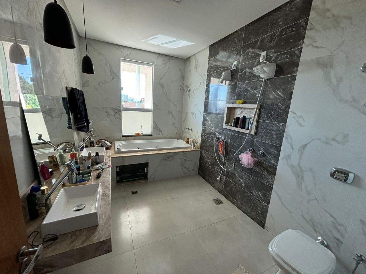À venda, 4 quartos sendo 1 suíte, 5 banheiros, até 4 vagas de garagem, 296m² de área construída. Sobrado com localização exclusiva, frente nascente e vista livre para a cidade, composto por sala ampla, copa/cozinha com balcão americano, copa, área com churrasqueira e cozinha, lavanderia e piscina com hidromassagem e cascata. Suíte com sacada, closet e banheira de hidromassagem, acabamento em porcelanato e vidros verdes. Analisa permuta por imóveis ou veículos de menor valor.