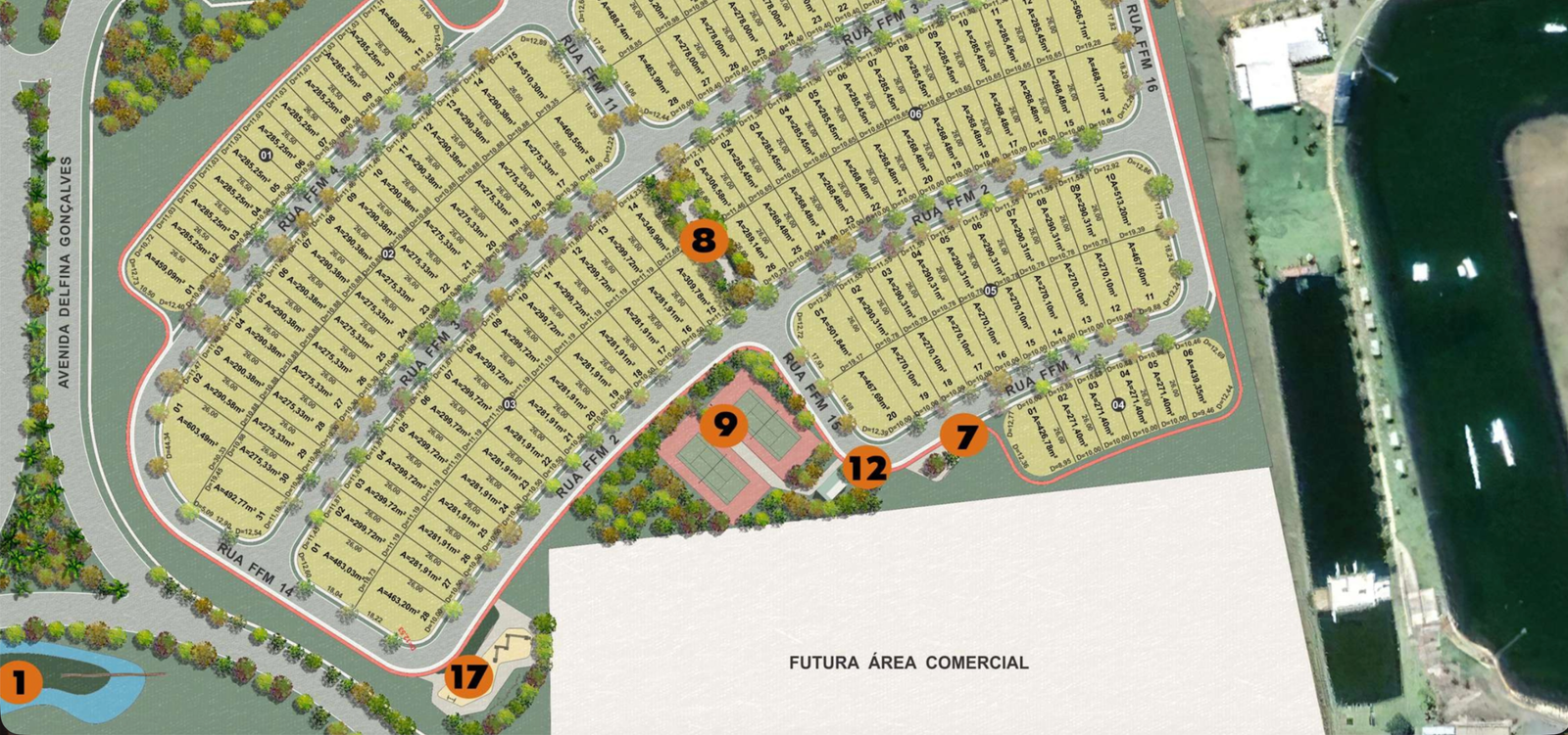 À venda, lote de esquina com 501m², Condomínio Solaris Laguna, em frente às quadras de tênis. Excelente localização interna, ideal para projeto residencial de alto padrão. Entrada de R$ 145.000,00 e saldo devedor de R$ 682.470,00.